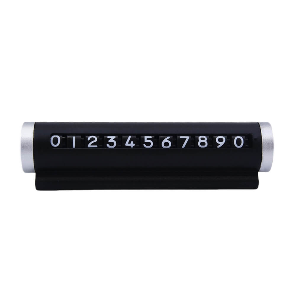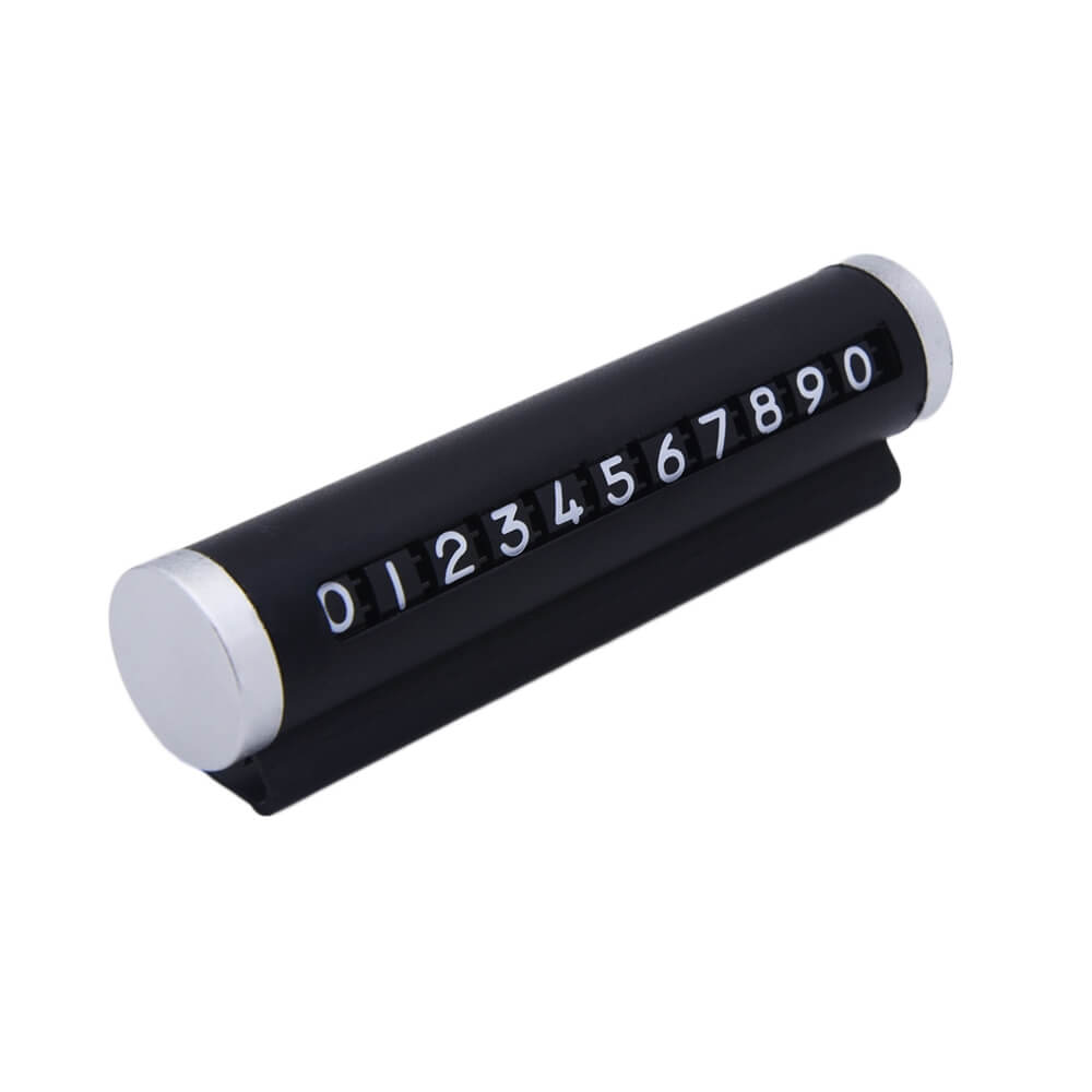 Автовизитка с номером телефона владельца автомобиля применяется во избежание неприятных инцидентов с припаркованным авто. Выполнена из нержавеющей стали, окрашенной в черный цвет. Основание крепится к панели двухсторонним скотчем. Показать и убрать номер можно одним движением, повернув цилиндрическую часть на основании.