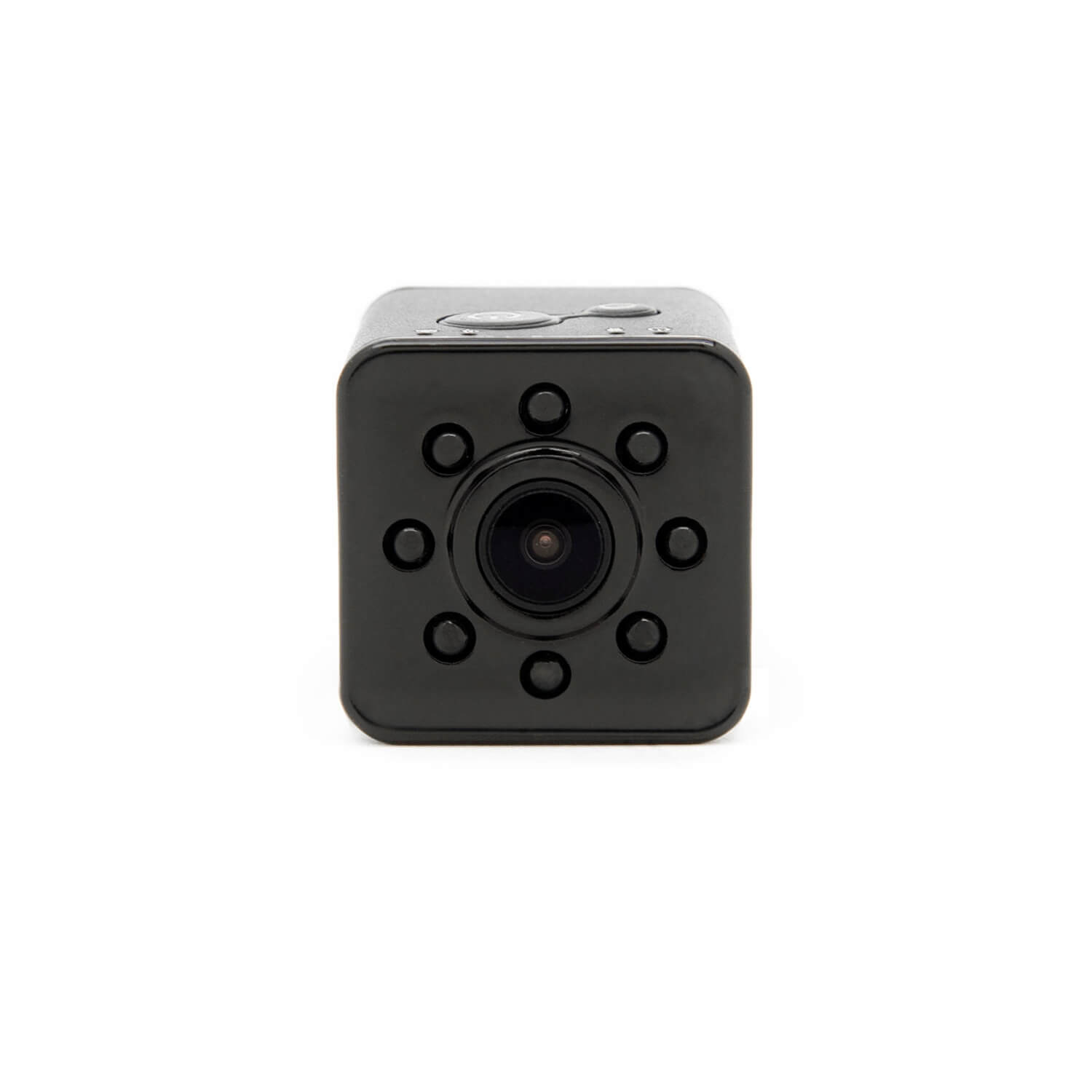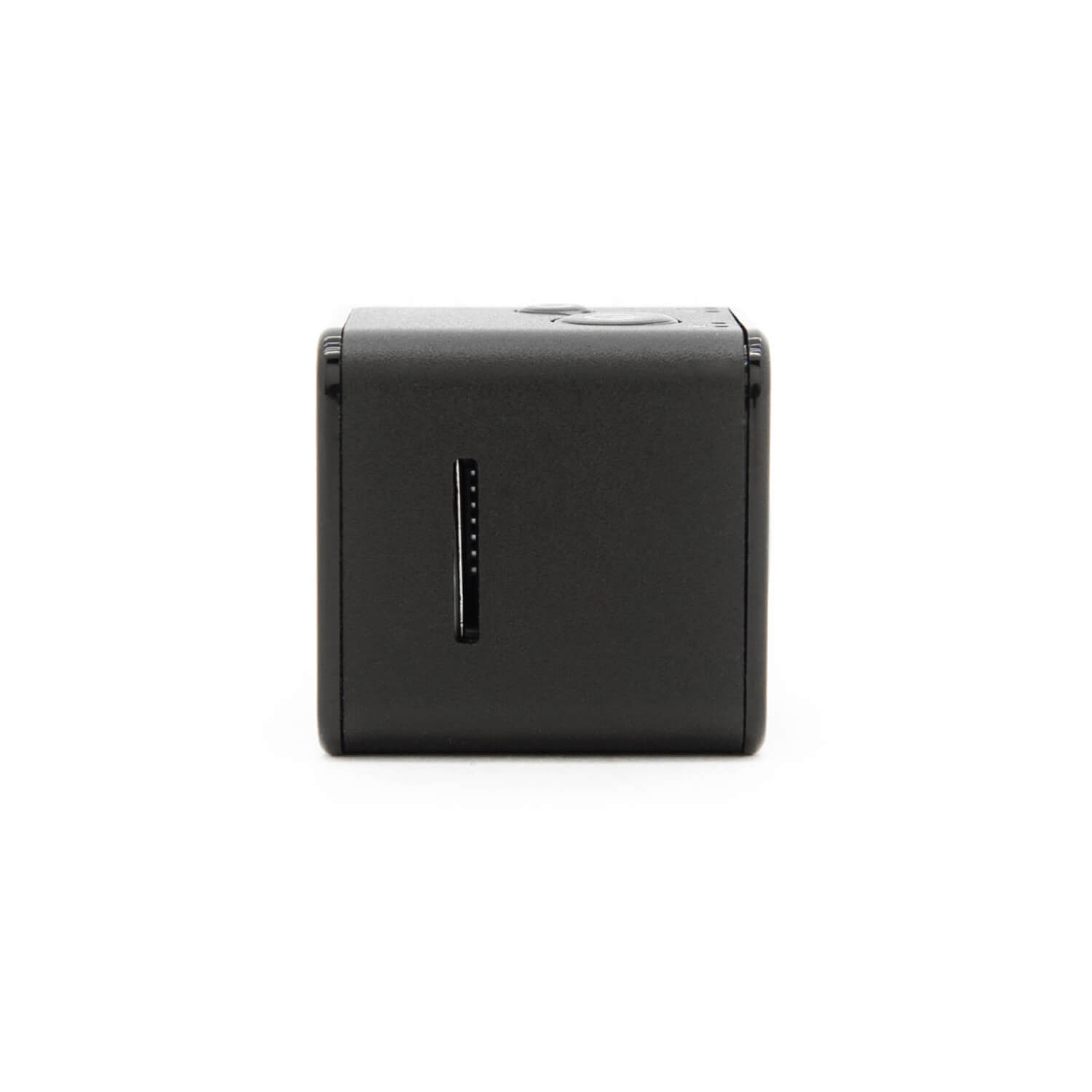 Мини видеокамера в форме кубика на подставке с шаровой опорой. Камера легко крепится к любому основанию и настраивается в нужном направлении. Восемь ИК светодиодов обеспечивают ночную съемку на расстоянии до 5 метров. Возможно использовать карту памяти Micro SD до 32 Гб с циклической записью. Встроенная литий-ионная батарея обеспечивает до 90 минут автономной работы в режиме записи.